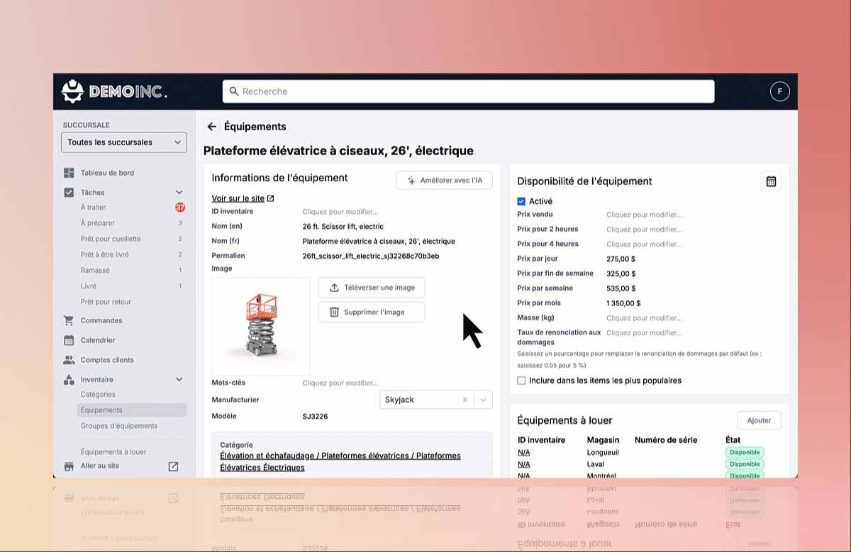 Easily check the availability calendar for any equipment to plan your reservations in just a few clicks.