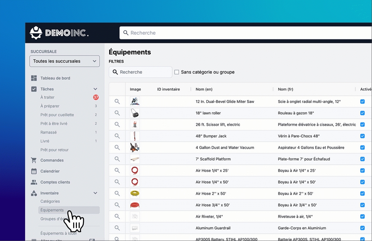 In the gray sidebar, go to Inventory > Equipment. You will arrive at the inventory list.